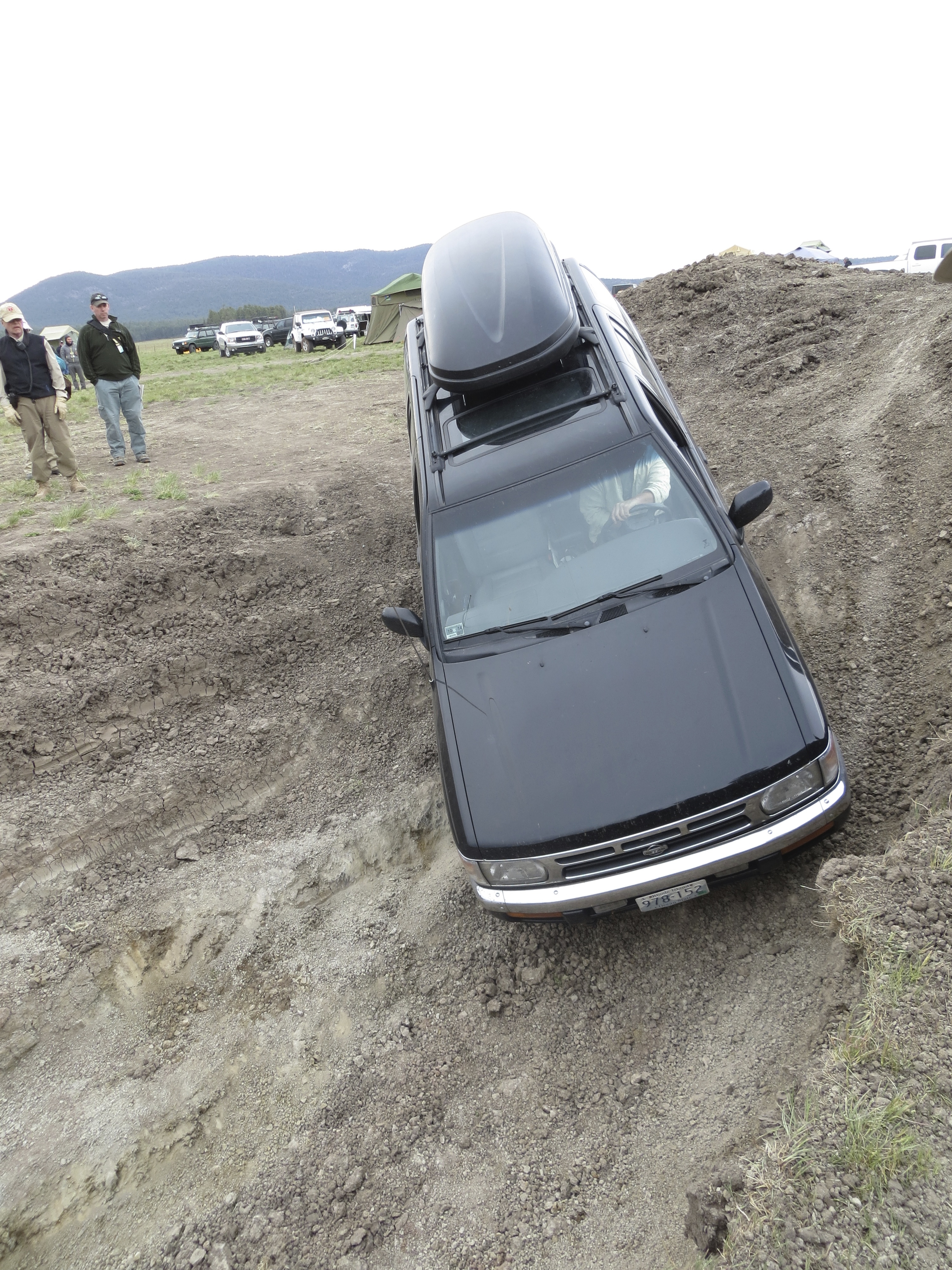 Friday morning we found ourselves like kids on the 1st day of school; schedules, maps, and notebooks in our bags along side snacks of nuts and our walkie-talkies as we kissed each other goodbye and found our way to our classes. We met up again in the afternoon for our Advanced Driving: Reading the Trail and Marshaling class. We took one look at the course and were glad we’d be using a Range Rover for it. The first leg was over a pile of large rocks and tree stumps that we were sure we were too low to cross and the second half, well, that was a 15′ pit complete with steep grade, a sharp corner at the bottom, and an uneven and slippery climb out. There was no way Gwen would be able to handle that! Our instructor thought differently however and told us to go get her. We were a mix of giddy, excited kids who thought they were doing something wrong and worried adults who thought they might be changing this to a recovery class soon enough. We let the other 6 vehicles who were legit overlanding 4x4s go ahead of us, just in case our instincts were correct. We mastered our marshaling skills with the other drivers and when they were all safely throughout the course, Tom pulled Gwen up. It was almost comical with her low stance and the more touristy than overlanding looking Thule on top. Tom stuck his head out the window and made a joke about our obvious fate that lay ahead, I told him to have faith and waved him forward. I got him over the pile of rocks and stumps, up over the uneven ledges without hitting one sidewall. We cheered and our instructor told us to keep going. “You think we’ll make it?”, I asked nervously. “You’d be surprised”, he said which is exactly what I wanted, I wanted to be surprised at what our little Gwendlyn could do, I wanted her to be capable of much more than I gave her credit for.