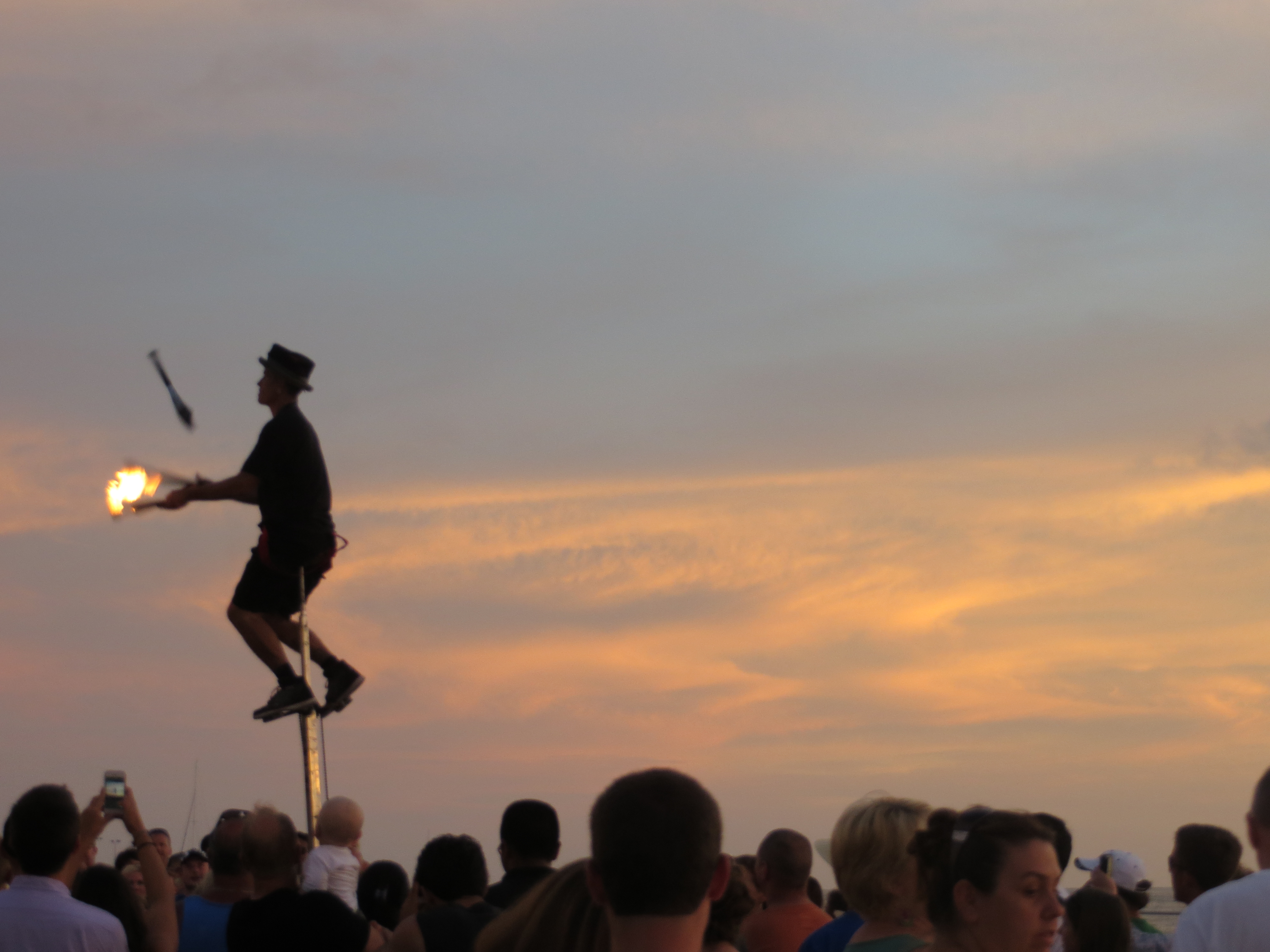 Key West Sunset FestivitiesWe went right to bed when we got back, but not without noticing how awful the no-see-ums were. Being a hot and humid Florida summer night, we were on top of the covers but I remember just before falling asleep I pulled the sheet up to my neck because I was being bit by the little flies. By 4:45 am the fan had died and the hot air was drawing my attention to my bitten skin. Tom heard me fussing about and we agreed it was probably better if we just packed it up right then. In the 15 minutes it took us to get in the car, we were gnawed all over! Tired, hot, and itchy we made our way back to the condo where my parents may or may not be, we had the key code so it was worth a shot. But my parents truck was in the lot so the key wouldn’t be in the box and we didn’t want to bang on their door at 5:00 in the morning so we kept on driving.