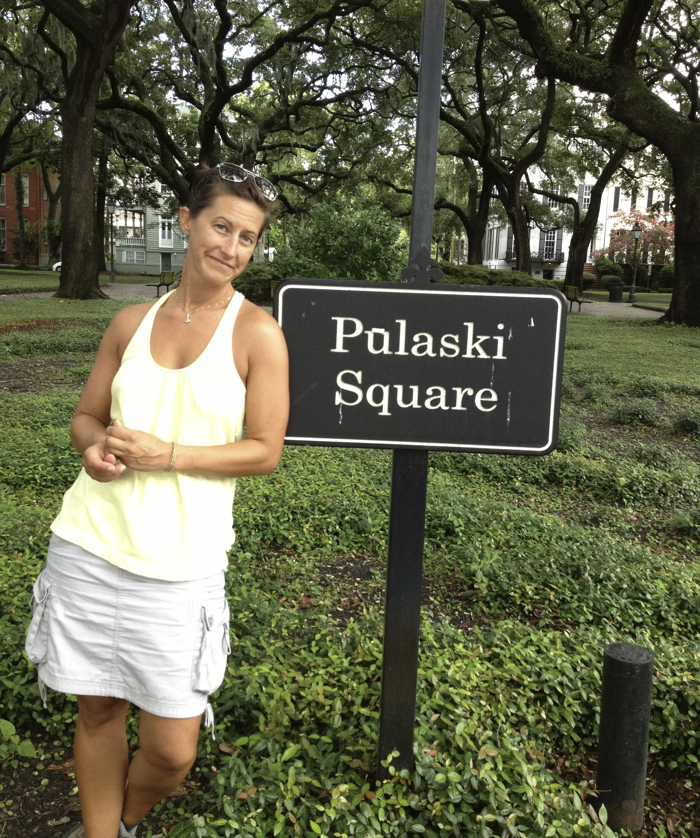 We found Pulaski Square and defaced corrected the spelling on the sign with a wet straw wrapper, we walked around looking for the Forest Gump bench to no avail, we had a great lunch at the cute little Cafe Gelatohhh! and as we walked toward the truck with our gelatos we realized we had no idea where the truck actually was!