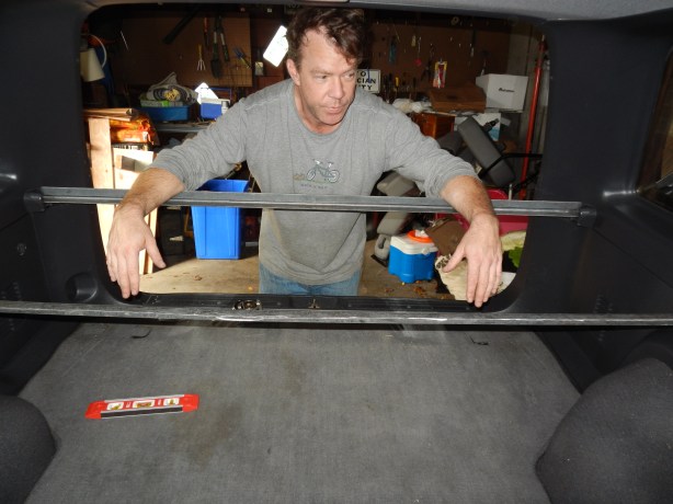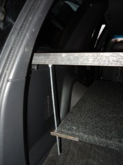 Using the brackets that held the cargo cover, clever Tom secured the support bar.