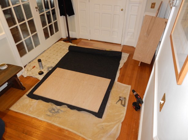 then laid the carpet over that and adhered it to the sides, framing the layers of bubble wrap.